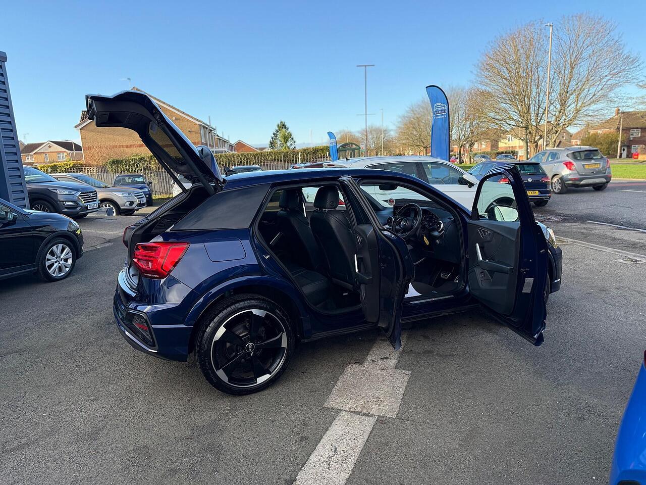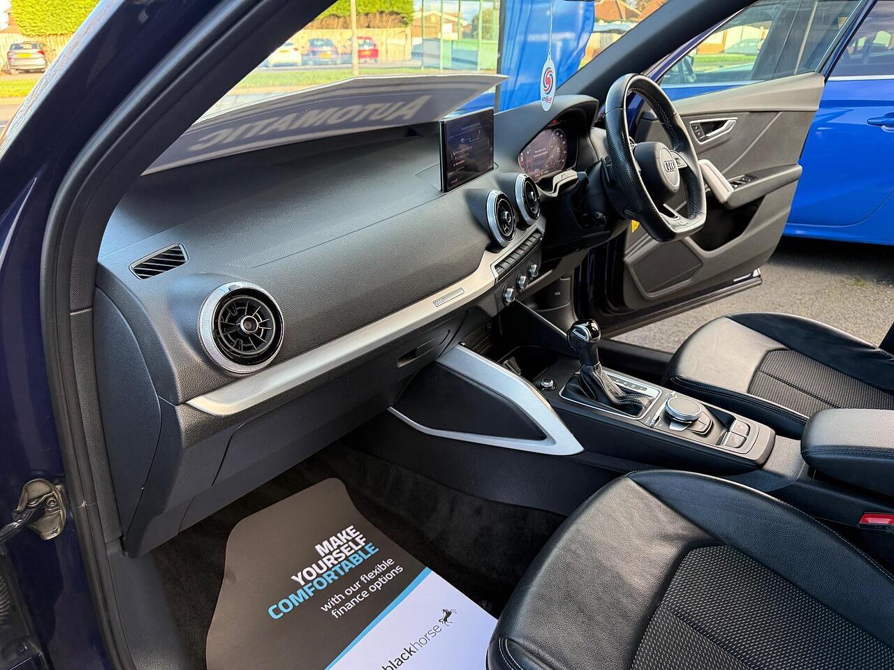 This 2021 Audi Q2 TFSI Black Edition boasts a full service history, offering peace of mind alongside its stylish presentation. As a Euro 6 compliant model, it features a 1.5 litre petrol engine and comes with a 12 month MOT for your assurance. The Black Edition trim enhances its appeal with striking LED headlights and rear lights, while the interior is equipped with a Bluetooth interface, Audi Smartphone Interface supporting both Android Auto and Apple CarPlay, and manual air conditioning for your comfort. Parking is made simpler with rear parking sensors.
