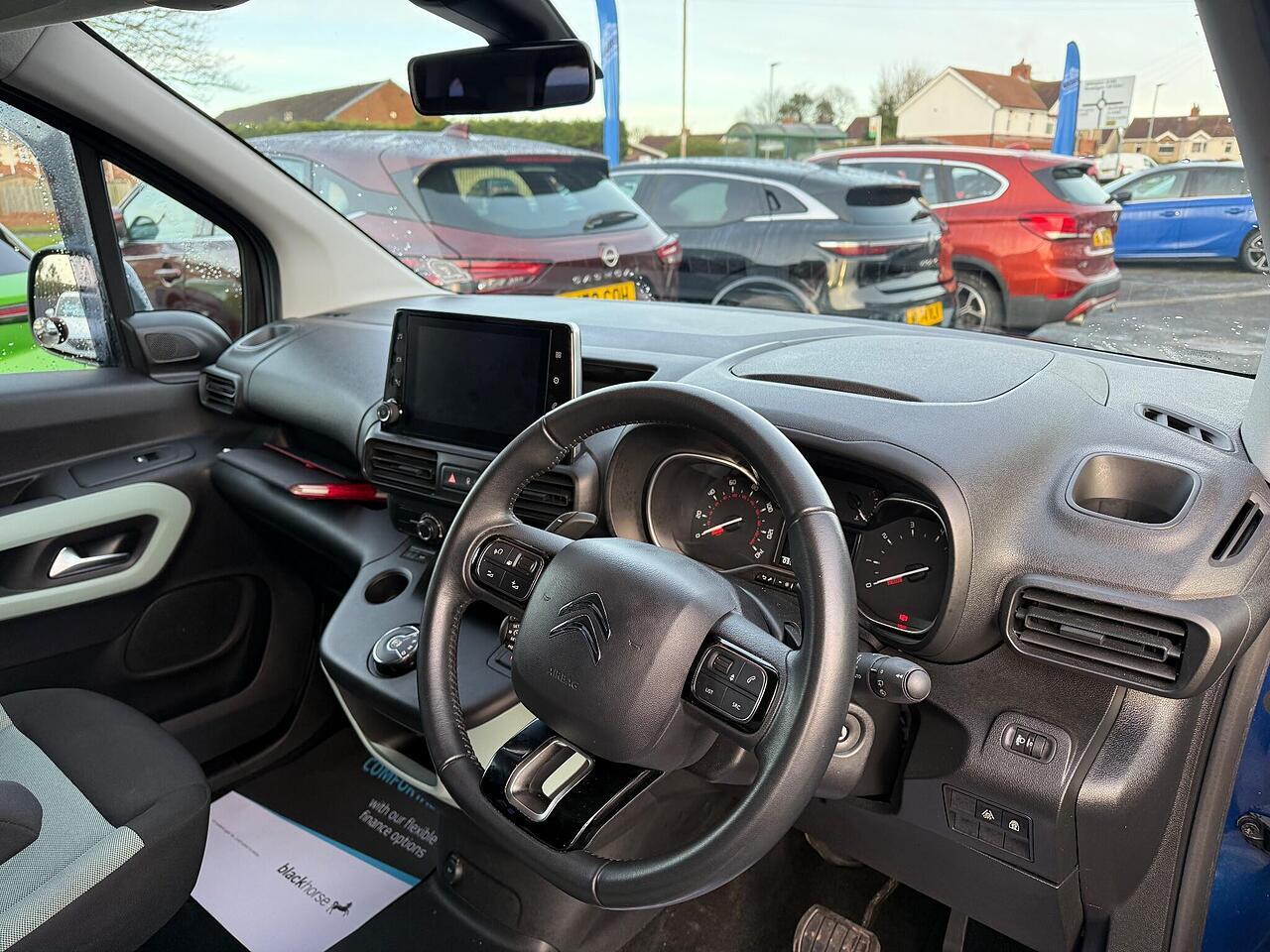 This 2021 Citroen Berlingo BlueHDi Flair boasts a full service history, with its last service completed on 24th June 2025 at 30,827 miles, ensuring excellent provenance. This Euro 6 compliant 1.5 litre diesel model comes with a 12 month MOT provided on purchase, offering peace of mind. Inside, you'll find Mirror Screen with Apple CarPlay and Android Auto for seamless smartphone integration, a Bluetooth telephone facility, and manual air conditioning for your comfort. The Flair trim also includes a Visibility Pack with automatic headlights and rear parking sensors with parking assistance, making every journey more convenient.