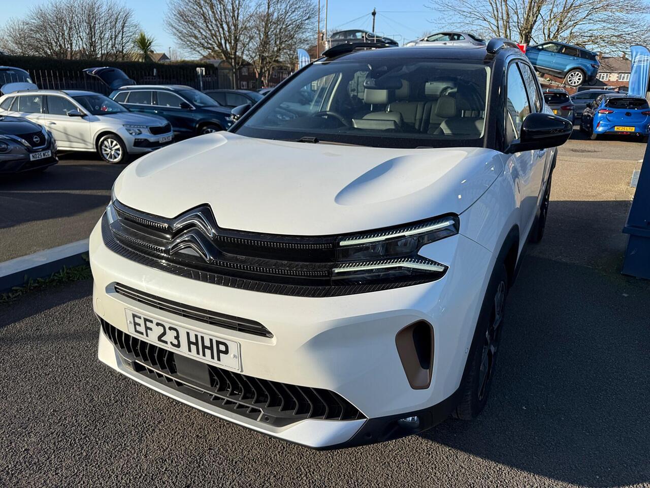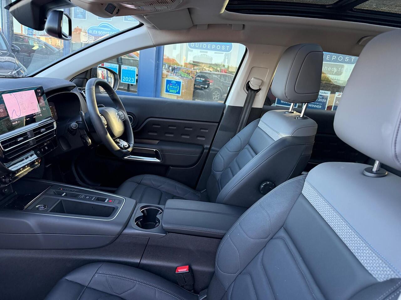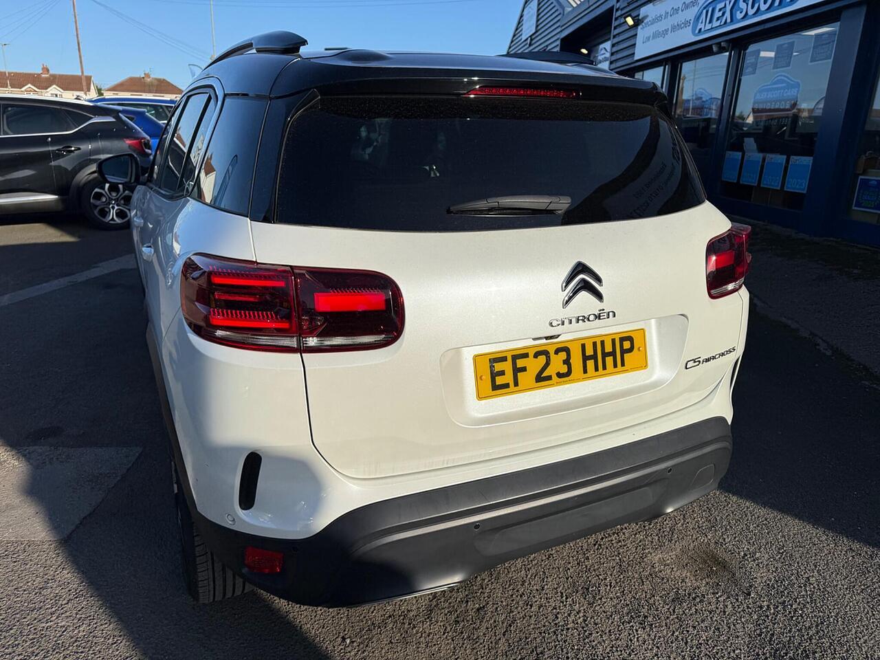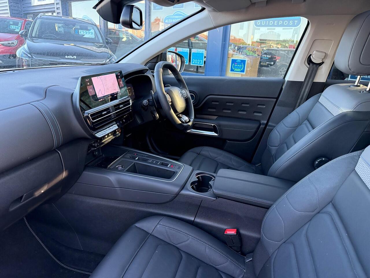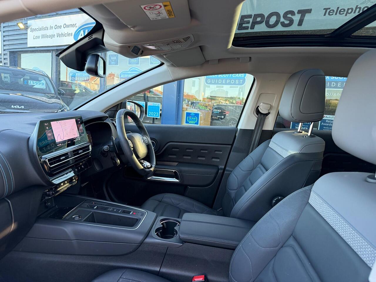 This 2023 Citroen C5 Aircross C Series Edition presents an exceptional opportunity with its remarkably low mileage of just 7000 miles. This single owner vehicle boasts a full dealership service history, ensuring its provenance is impeccable. Under the bonnet, you'll find an efficient 1.2 litre petrol engine compliant with Euro 6 emissions standards. Notable features include the Drive Assist Pack with Highway Driver Assist, which incorporates Blind Spot Assistance and Adaptive Cruise Control, enhancing your driving experience. Comfort is further assured with Automatic Dual Zone Climate Control and an Acoustic Laminated Windscreen featuring rain and brightness sensors, automatically activating the LED headlights. Connectivity is seamless thanks to Citroen Connect Play, supporting both Android Auto and Apple CarPlay.