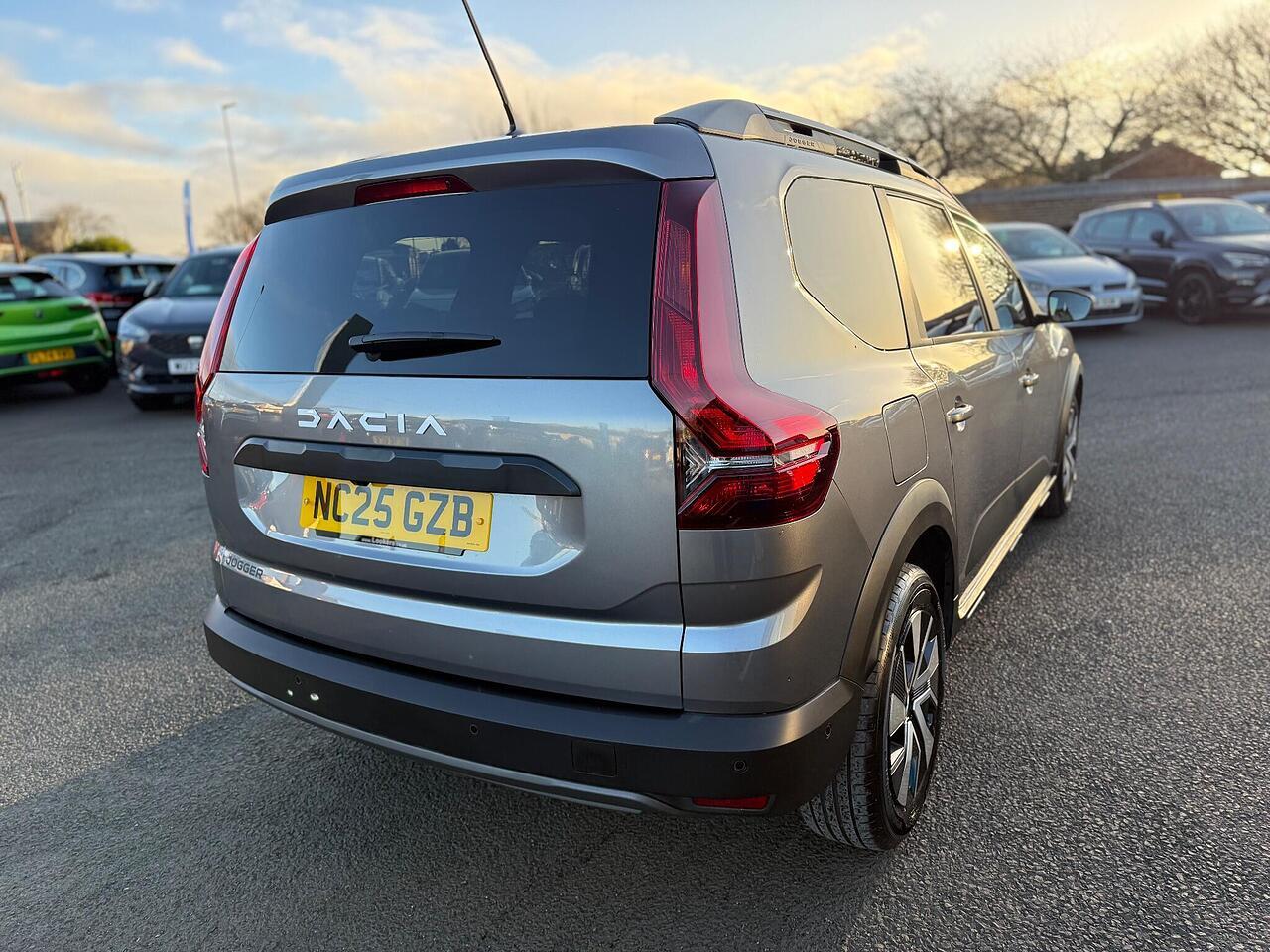 This 2025 Dacia Jogger TCe Expression is a remarkable find, boasting an incredibly low mileage of just 3000 miles, making it practically new. As a single owner vehicle, it has been meticulously cared for. This Euro 6 compliant 1.0L petrol model offers seating for seven, perfect for families or those needing extra space. The Expression trim comes equipped with a suite of practical features, including front and rear parking sensors paired with a rear view camera for effortless manoeuvring. Stay connected and entertained with the 8in Media Display, featuring DAB radio, Android Auto, and Apple CarPlay. Convenience is enhanced by keyless entry and an auto lighting system, while the blind spot warning provides an extra layer of safety on your journeys.