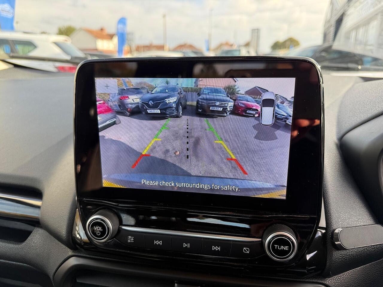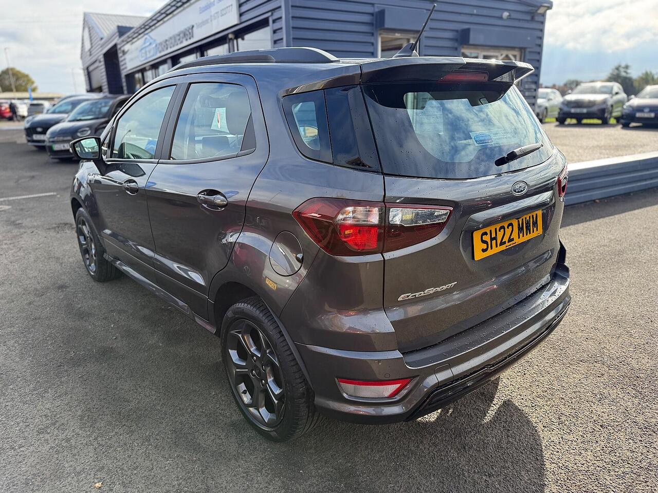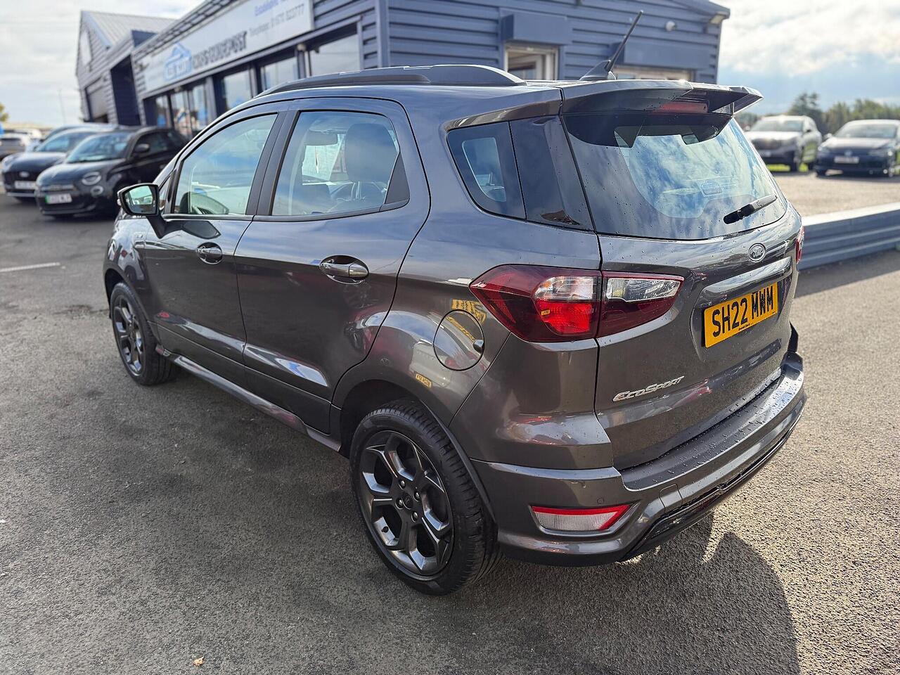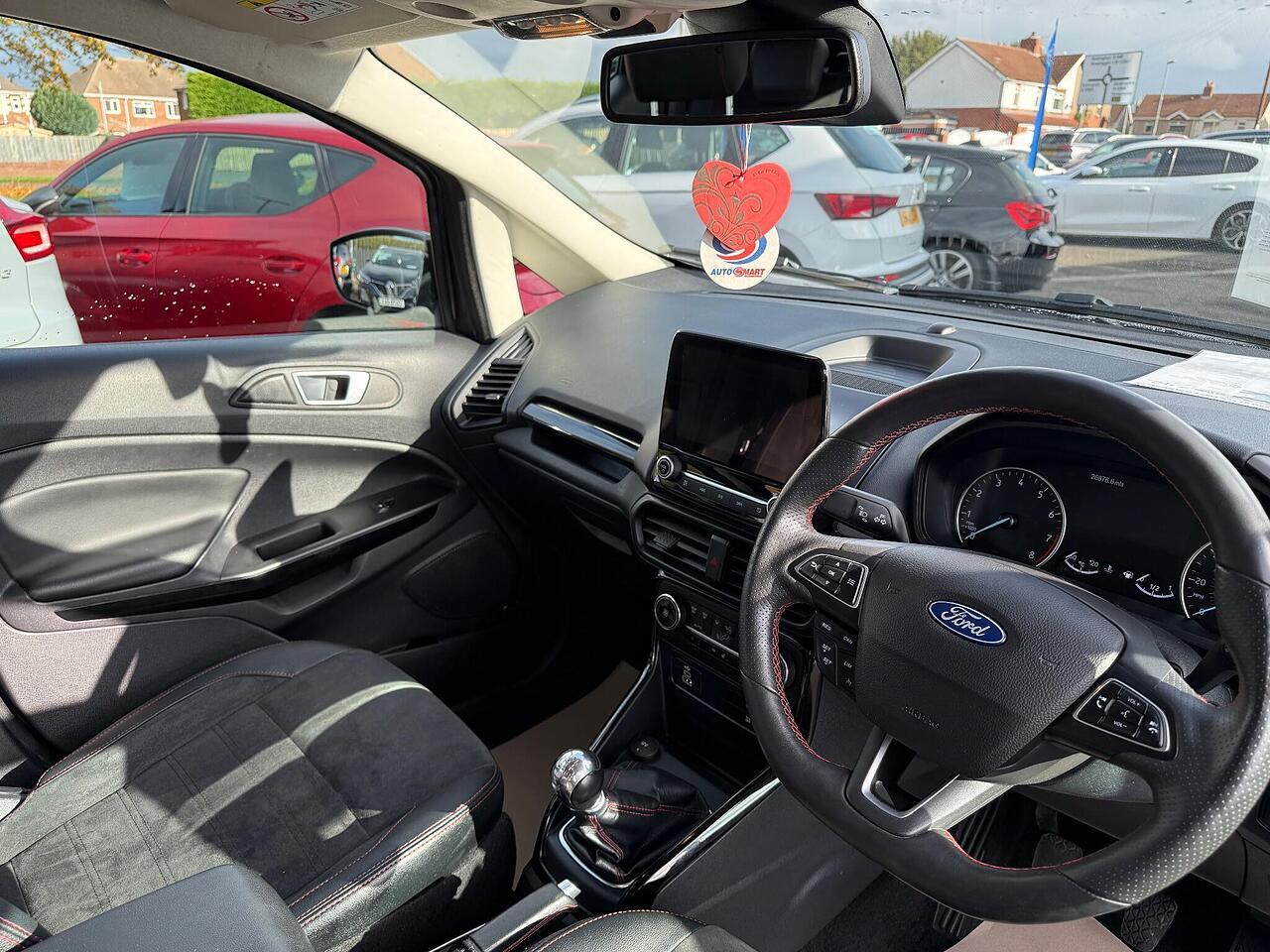 This 2022 Ford EcoSport ST-Line T is a superb example, boasting a full dealership service history and having had only one owner from new. This stylish compact SUV is powered by an efficient 1.0L petrol engine, meeting Euro 6 emissions standards. It comes equipped with a desirable Winter Pack, featuring heated seats and a heated steering wheel for ultimate comfort. For convenience and safety, it includes rear parking sensors and a rear view camera, complemented by automatic headlights.