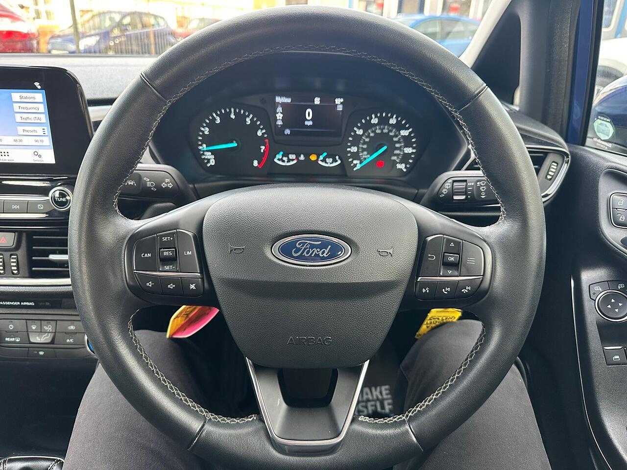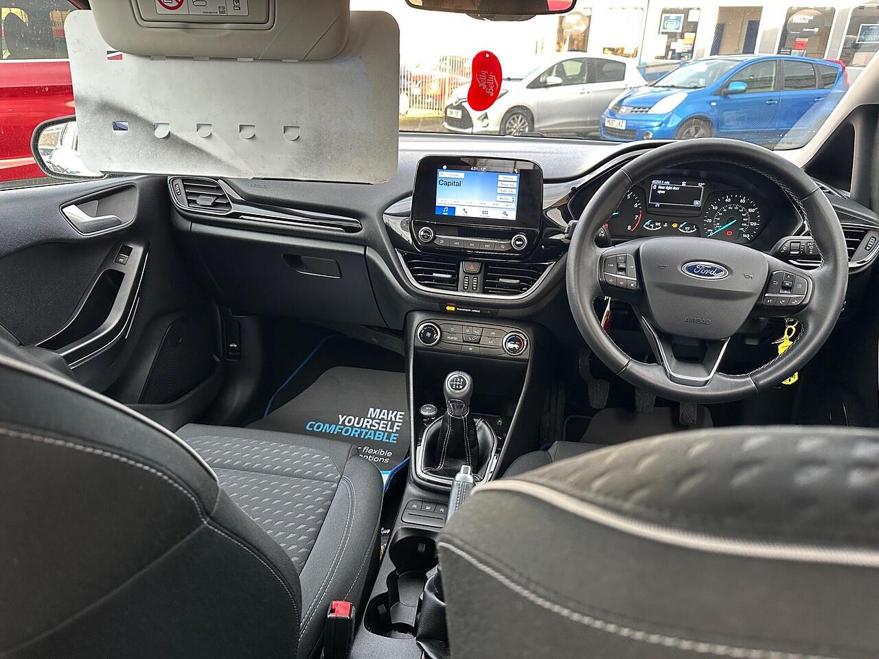This 2017 Ford Fiesta Ti-VCT Zetec presents a remarkable opportunity with its exceptionally low mileage of just 46,000 miles for its age. This particular model, a Euro 6 compliant 1.1L petrol engine variant, benefits from a partial service history and will be supplied with a full 12 months MOT for your peace of mind. Inside, you'll find a well equipped cabin featuring manual air conditioning, a Ford DAB radio with Ford SYNC3, offering seamless integration with Apple CarPlay and Android Auto, and automatic headlights that adjust to changing light conditions. The NCAP Pack further enhances safety.