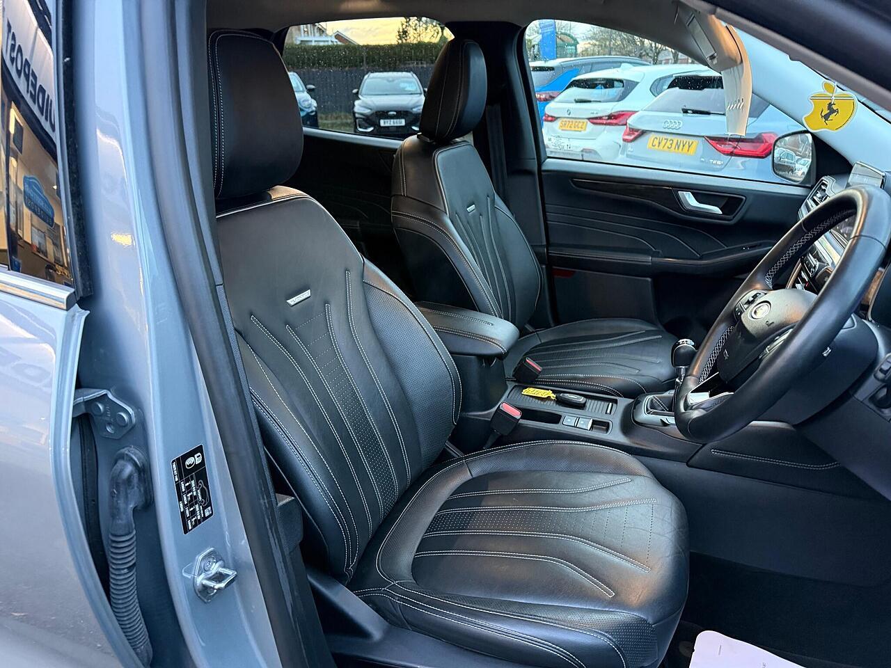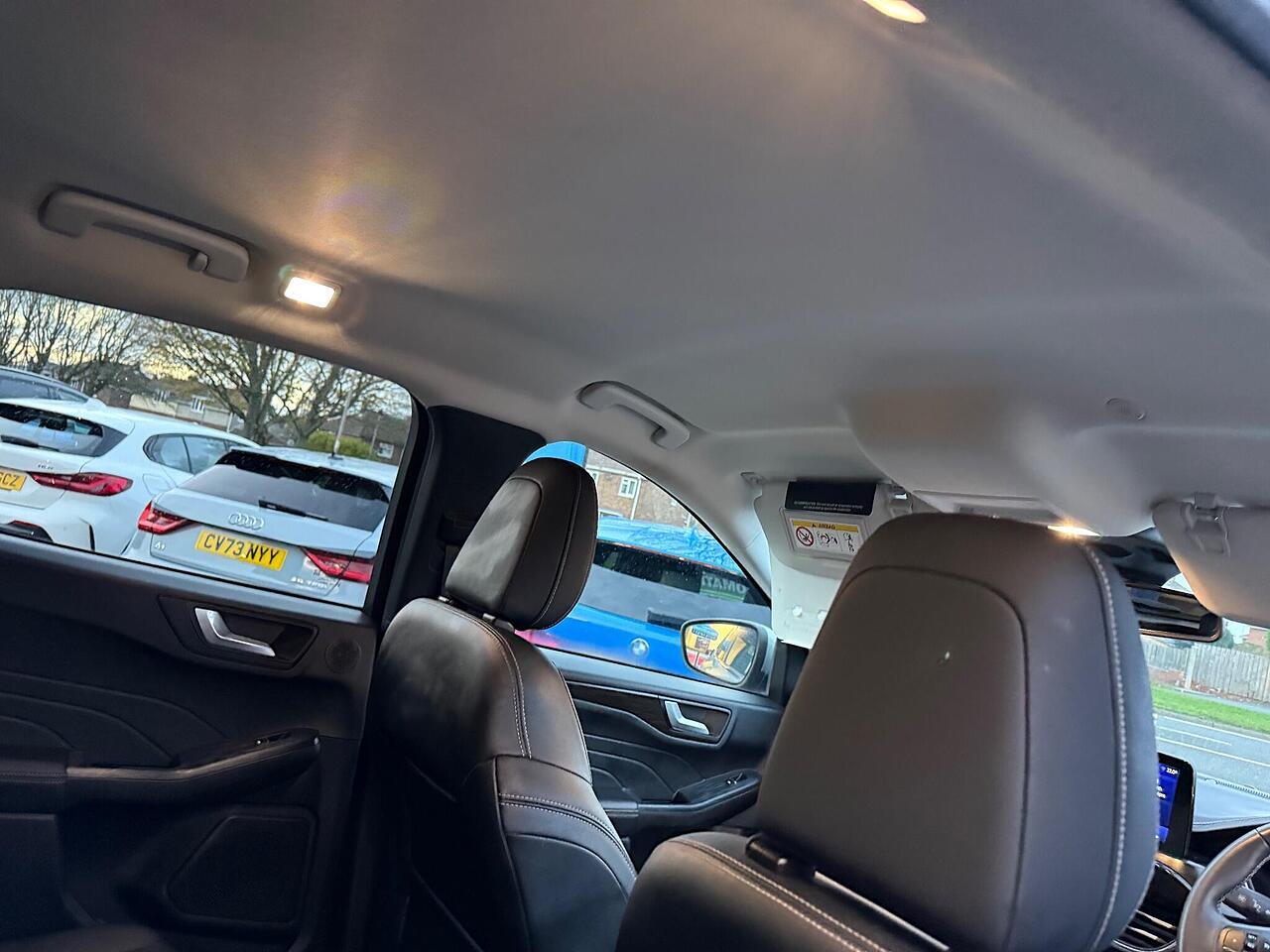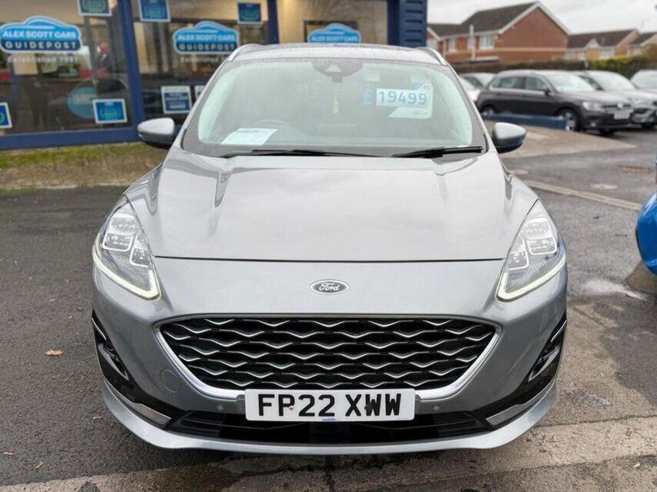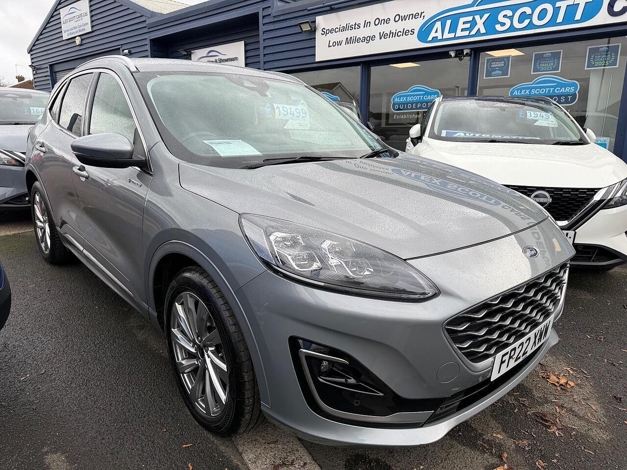 This 2022 Ford Kuga T Vignale is a standout example, boasting a full dealership service history and having had only one owner from new. Powered by a 1.5 litre petrol engine and meeting Euro 6 emissions standards, this Vignale trim model offers a refined driving experience. You'll appreciate the convenience of automatic headlights with auto high low beam and follow me home lighting, alongside the comfort of a heated steering wheel and electronic automatic air conditioning. Navigation is made simple with the Ford SYNC3 DAB system, complete with Android Auto and Apple CarPlay integration, all delivered through a premium branded sound system.