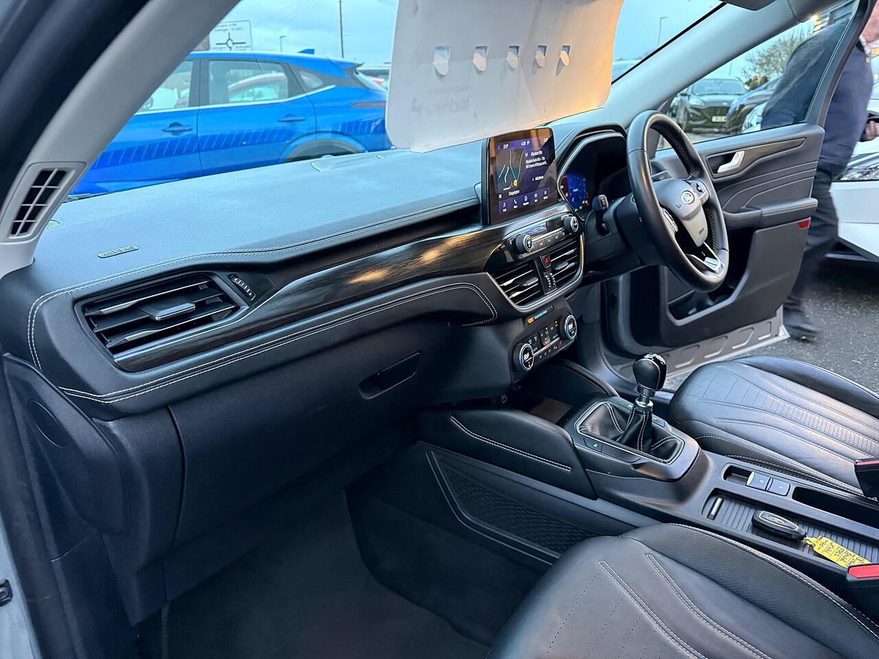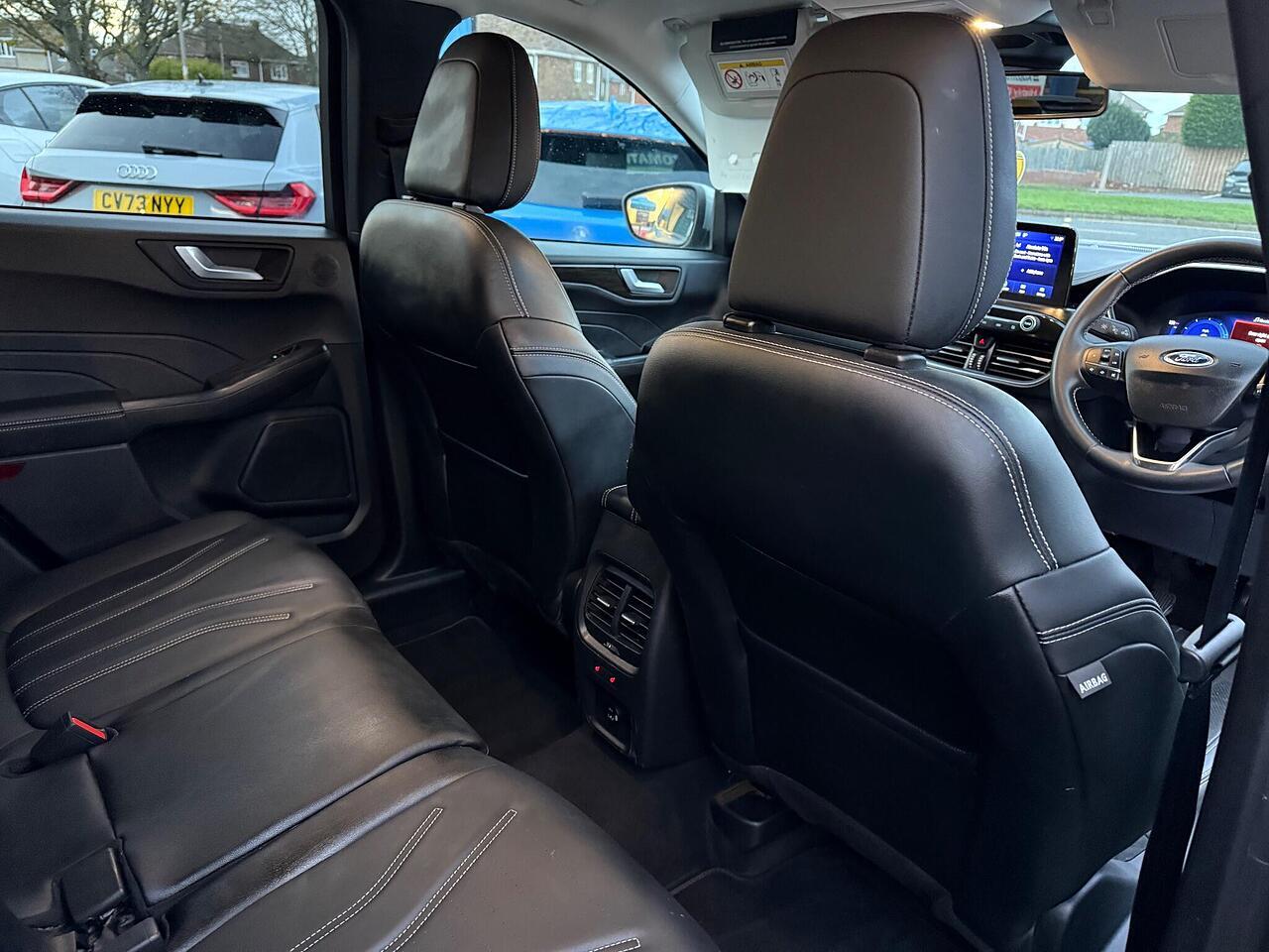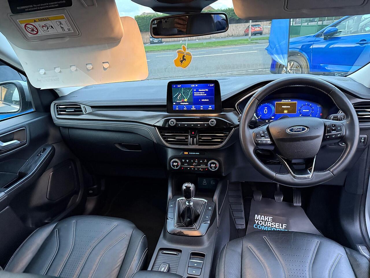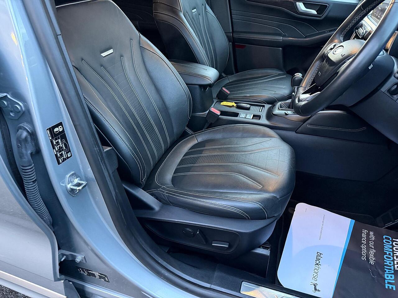 This 2022 Ford Kuga T Vignale is a standout example, boasting a full dealership service history and having had only one owner from new. Powered by a 1.5 litre petrol engine and meeting Euro 6 emissions standards, this Vignale trim model offers a refined driving experience. You'll appreciate the convenience of automatic headlights with auto high low beam and follow me home lighting, alongside the comfort of a heated steering wheel and electronic automatic air conditioning. Navigation is made simple with the Ford SYNC3 DAB system, complete with Android Auto and Apple CarPlay integration, all delivered through a premium branded sound system.
