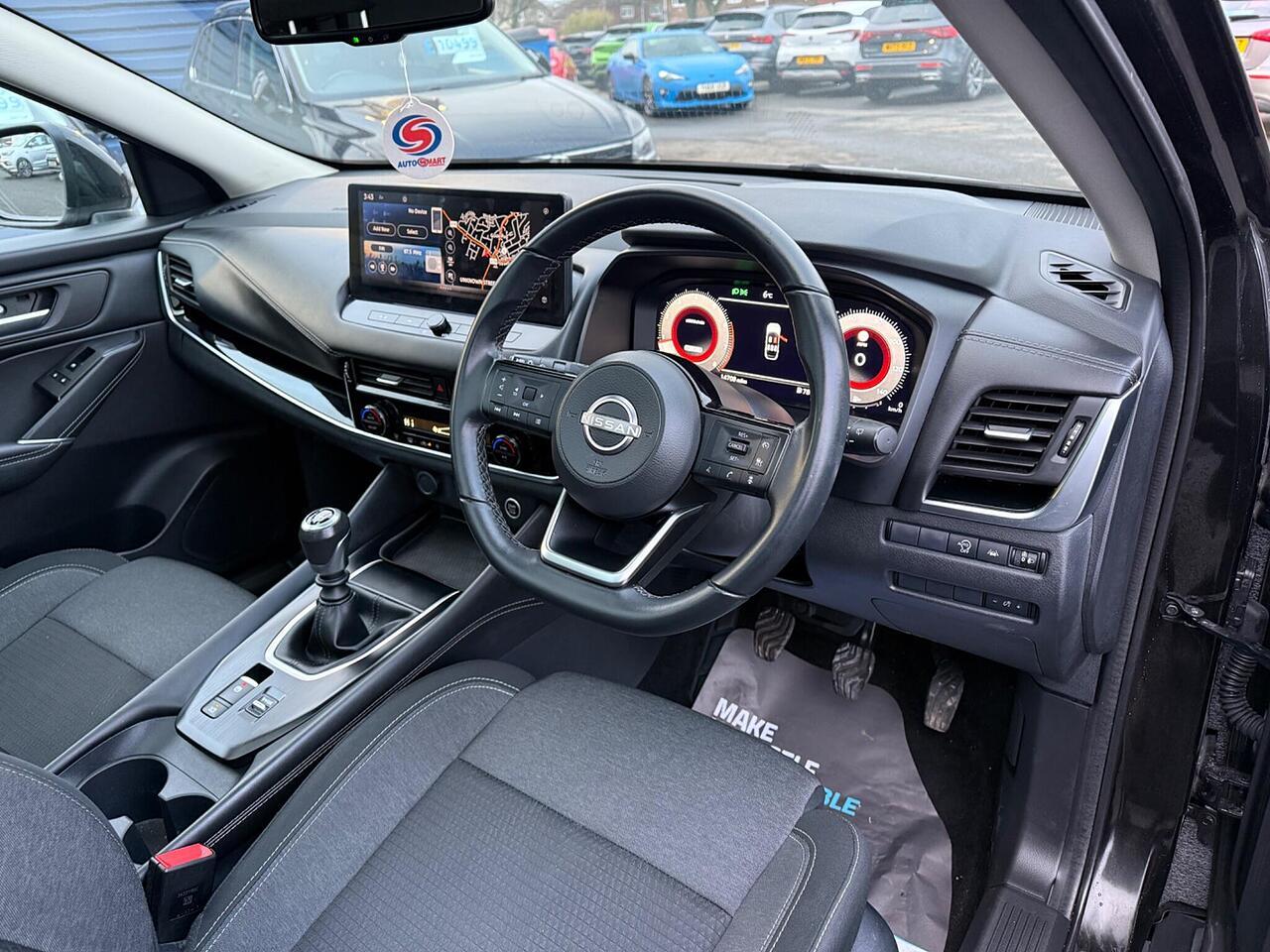 Discover this exceptional 2022 Nissan Qashqai DIG T N Connecta, boasting incredibly low mileage for its age, having covered just 14,000 miles. This one owner vehicle is presented in the desirable N Connecta trim and features a fuel efficient 1.3L Petrol Hybrid engine, meeting Euro 6 emission standards. Inside, you'll appreciate the comfort of Automatic Dual Zone Climate Control with a Pollen Filter, and the convenience of Wired Android Auto and Wireless Apple CarPlay for seamless smartphone integration. The Glass Roof Pack, including a fixed Panoramic Sunroof, adds an open and airy feel to the cabin, while Front Parking Sensors provide added assistance when manoeuvring.