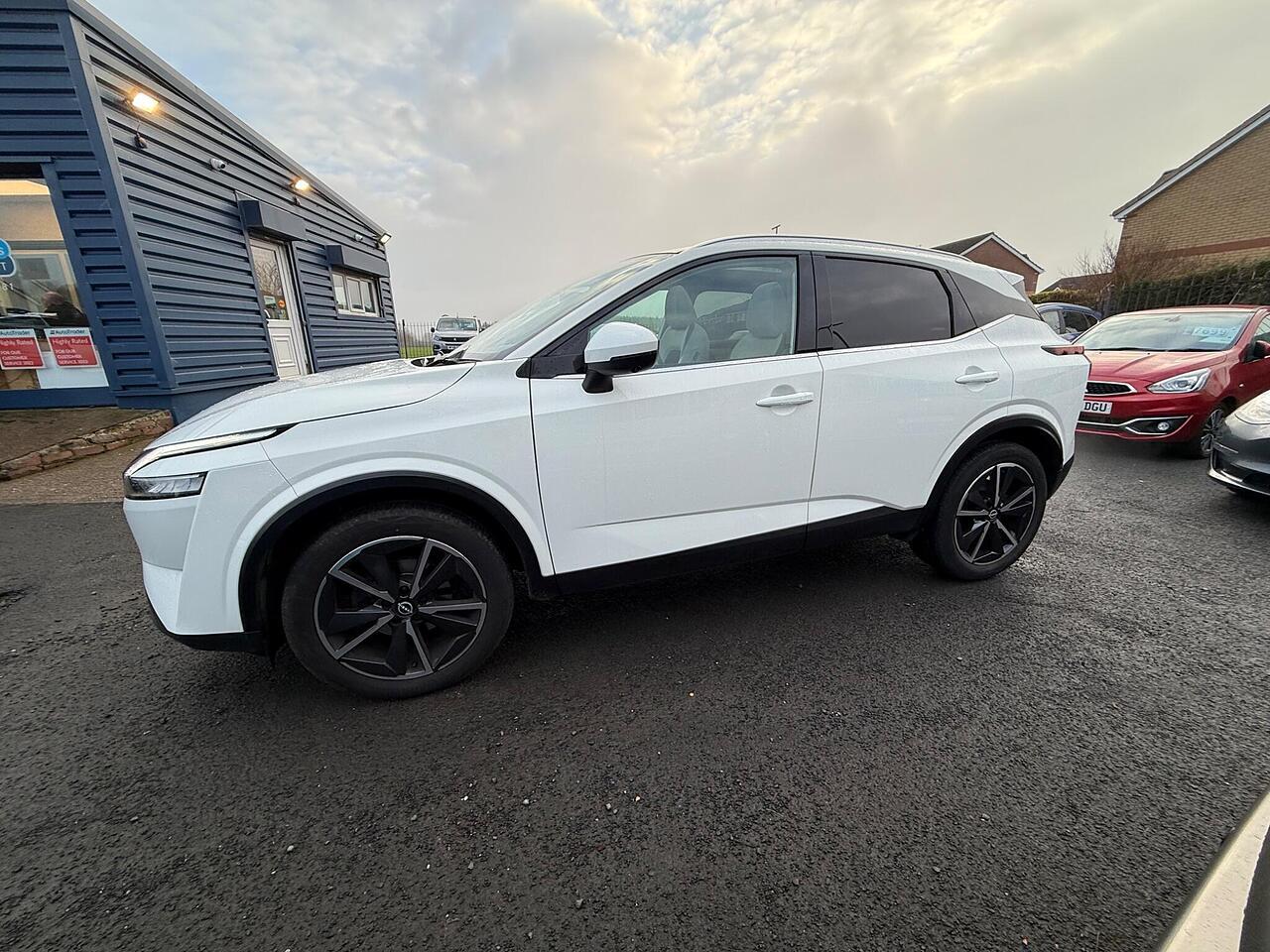 This 2022 Nissan Qashqai DIG-T Tekna boasts a full dealership service history and has had only one owner, offering excellent provenance. This Euro 6 compliant model features a 1.3 litre petrol hybrid engine and benefits from an MOT valid until October 2026. Inside, you'll find a Heat Pack with heated seats and a heated steering wheel, alongside automatic dual zone climate control with a pollen filter. For enhanced driving convenience, it includes an advanced windscreen head up display, rear parking sensors, and an intelligent around view monitor providing a 360 degree camera system.