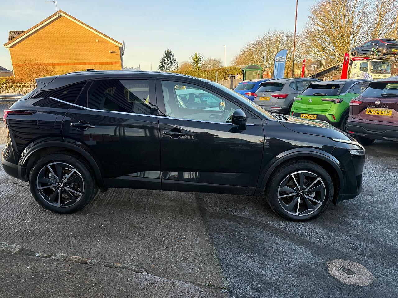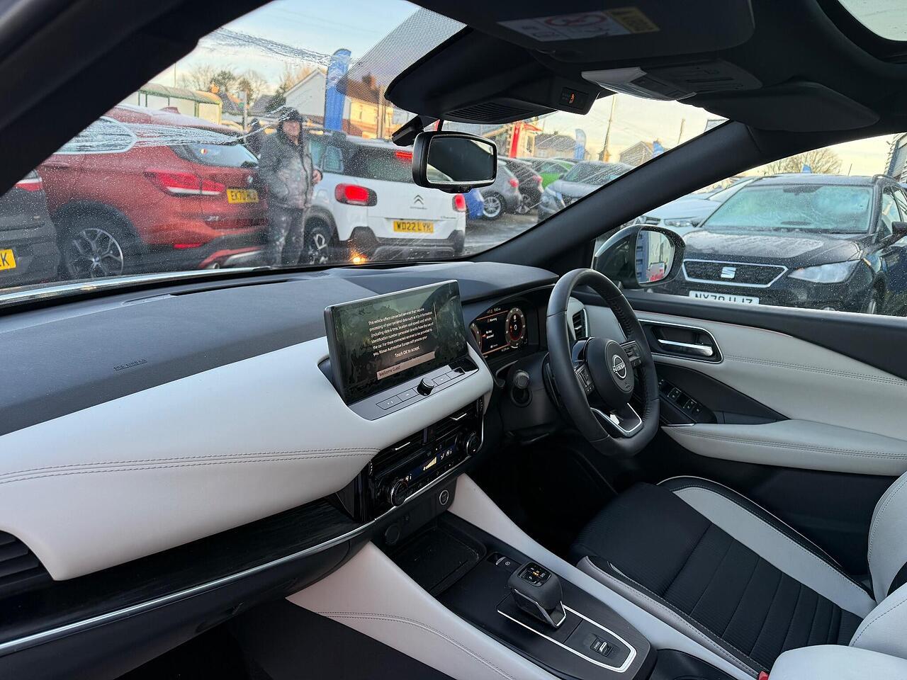 This 2023 Nissan Qashqai DIG-T Tekna presents an exceptional opportunity with its incredibly low mileage of just 2000 miles, making it virtually as new. This Euro 6 compliant 1.3L Petrol Hybrid model boasts a full dealership service history and has had only one owner from new. The Tekna trim level comes equipped with a suite of advanced features designed for convenience and safety, including an Intelligent Around View Monitor with a 360 degree camera for effortless parking assistance, and Intelligent Auto Headlights that activate automatically. You'll also appreciate the Advanced Windscreen Head Up Display, the Glass Roof Pack featuring a panoramic fixed sunroof, and the comfort of a heated steering wheel.