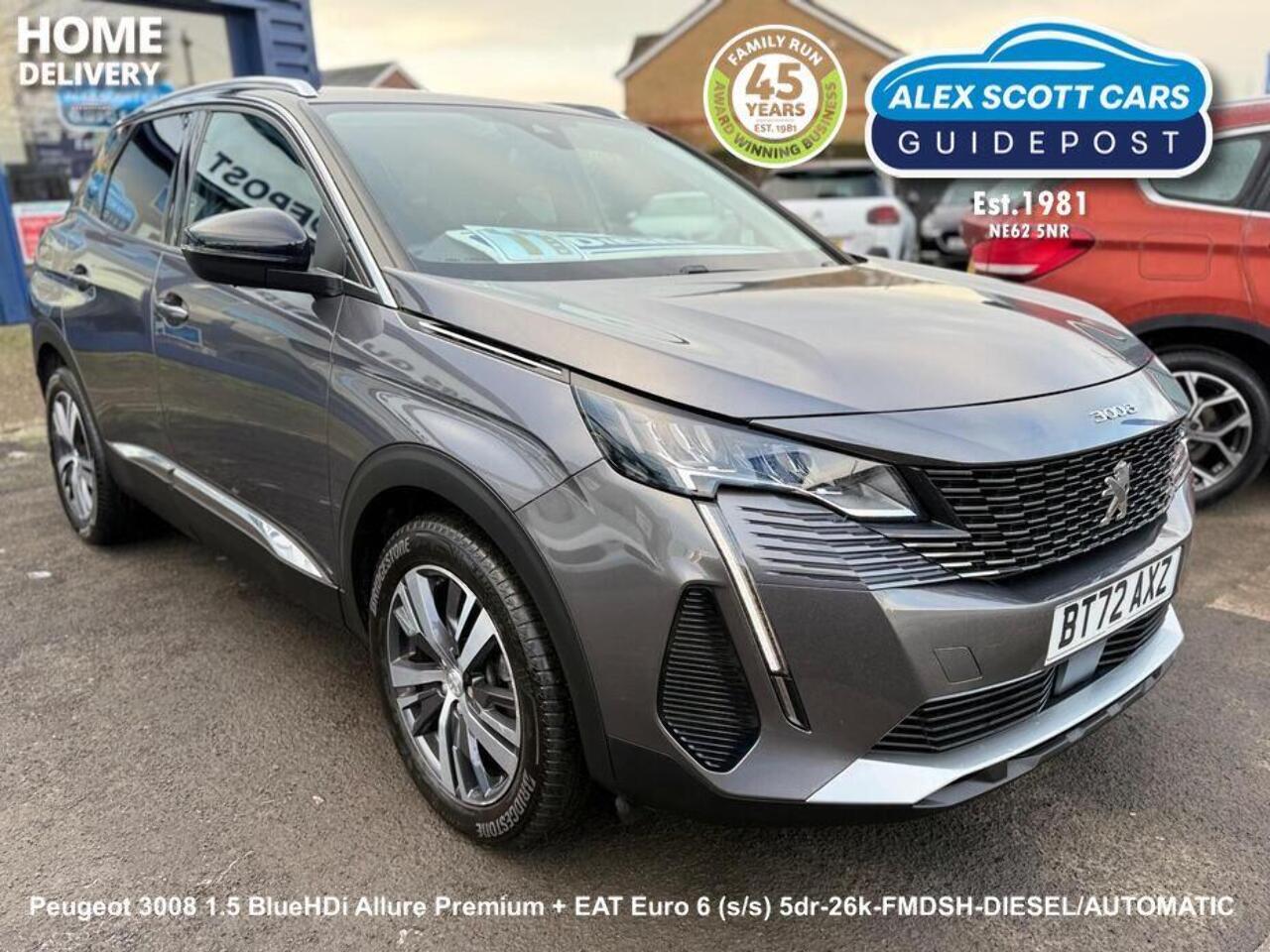 This 2022 Peugeot 3008 BlueHDi Allure Premium + offers exceptional value with its remarkably low mileage of just 21000 miles, having been owned by only one careful keeper. This Euro 6 compliant 1.5 litre diesel model combines practicality with advanced technology, featuring the Visibility Pack with automatic headlights, Bluetooth telephone connectivity, and the convenient PEUGEOT Open and Go System for keyless entry. Enjoy seamless smartphone integration with Mirror Screen, supporting both Apple CarPlay and Android Auto, while the Blue Ambient Lighting to the Head Up Instrument Panel adds a touch of sophistication.