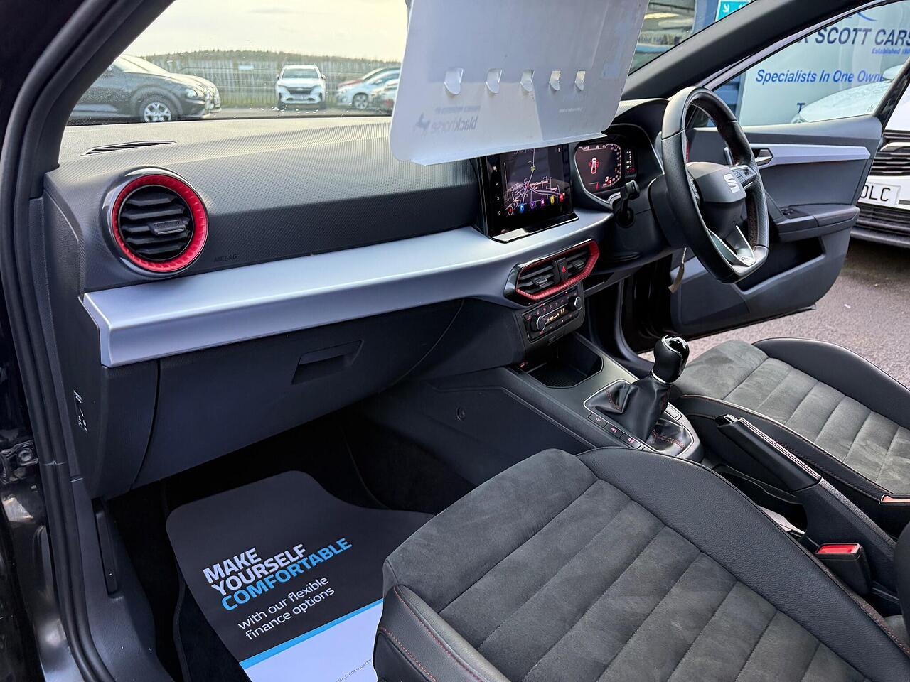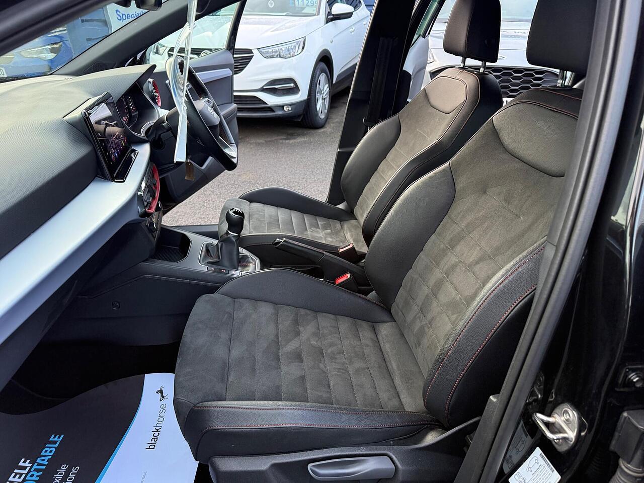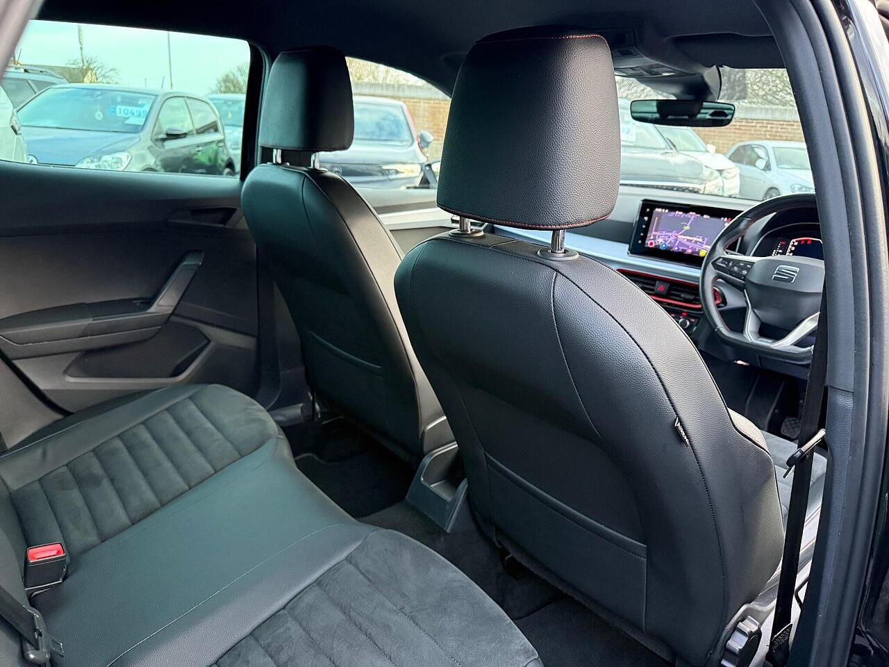 This 2023 SEAT Ibiza TSI FR Sport boasts a full dealership service history from its single owner, offering peace of mind. This stylish hatchback is equipped with a 1.0 litre Euro 6 petrol engine, ensuring efficient performance. Notable features include full LED automatic headlights for enhanced visibility, Full Link smartphone integration with Android Auto and Apple CarPlay for seamless connectivity, and a Safety and Driving Pack with rear parking sensors to aid manoeuvring. Enjoy your favourite music and calls with Bluetooth audio streaming and handsfree, while the dual zone climate control keeps everyone comfortable.