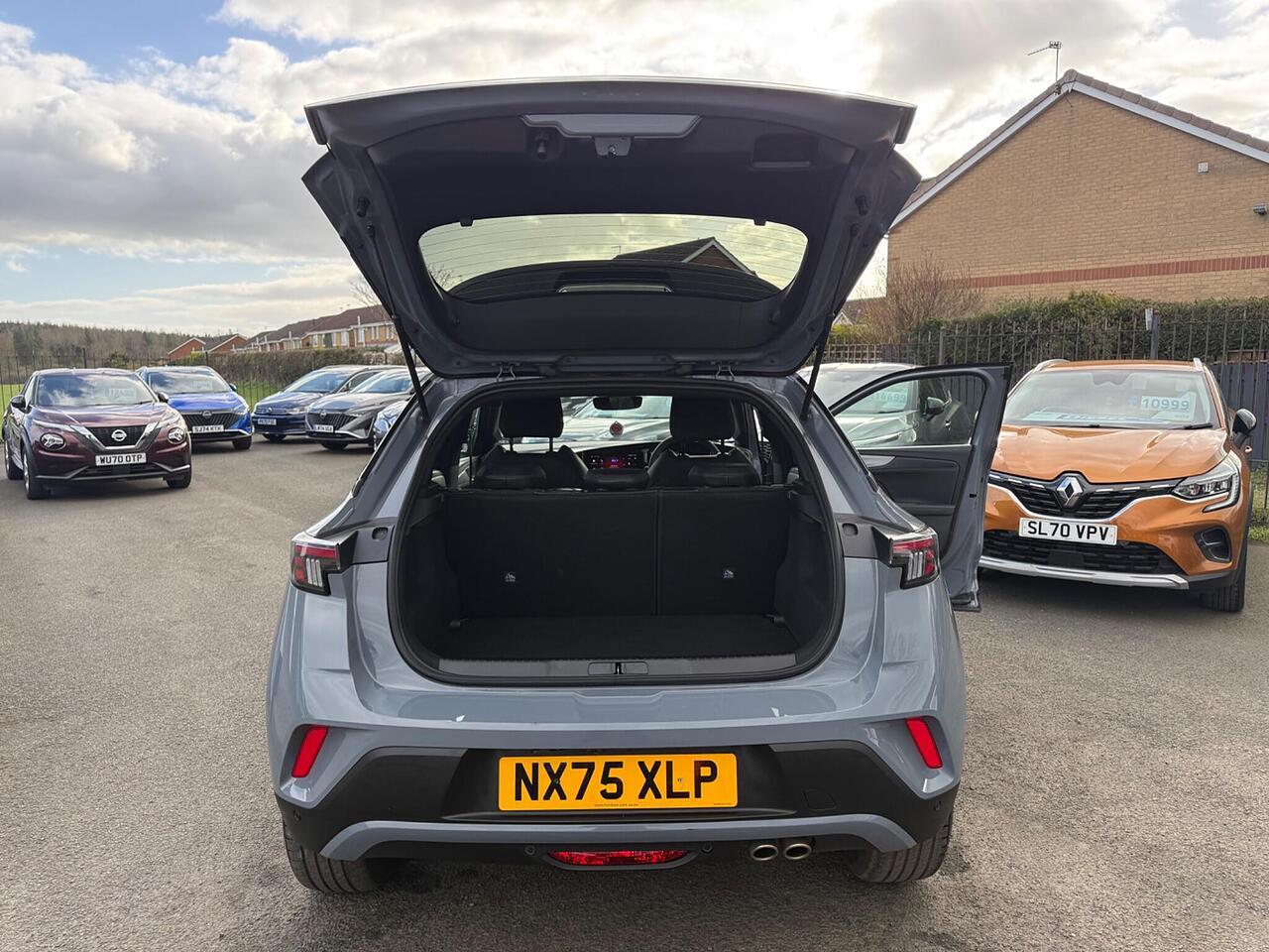 This 2025 Vauxhall Mokka Turbo Ultimate boasts a full dealership service history and has had only one owner from new. This stylish SUV is equipped with a responsive 1.2 litre petrol engine, meeting Euro 6 emission standards. Inside, you'll find a host of convenient features including keyless entry and start, a mobile phone portal with Bluetooth connectivity, and a wireless phone charger. The Ultimate trim also includes a heated steering wheel, offering both vegan leather and leather effect options for your comfort.