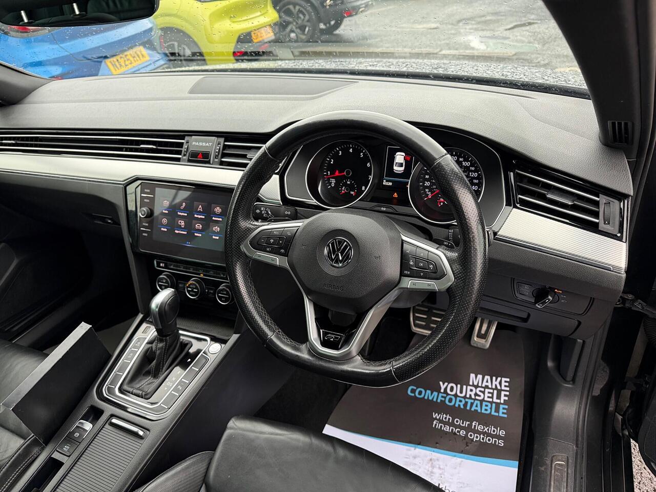 This 2020 Volkswagen Passat TSI EVO R-Line presents a superb ownership proposition, having been cherished by only one owner since new. This well appointed saloon features a responsive 1.5 litre petrol engine, meeting Euro 6 emissions standards, and is presented in the sporty R-Line trim. Inside, you'll find comfort and convenience with three zone climate control, allowing everyone to set their preferred temperature, and adaptive cruise control for relaxed journeys. Practicality is enhanced by front and rear parking sensors to aid manoeuvring, and an easy open full electric tailgate with keyless entry. Automatic driving lights, activated by a dusk sensor, ensure you always have optimal visibility.