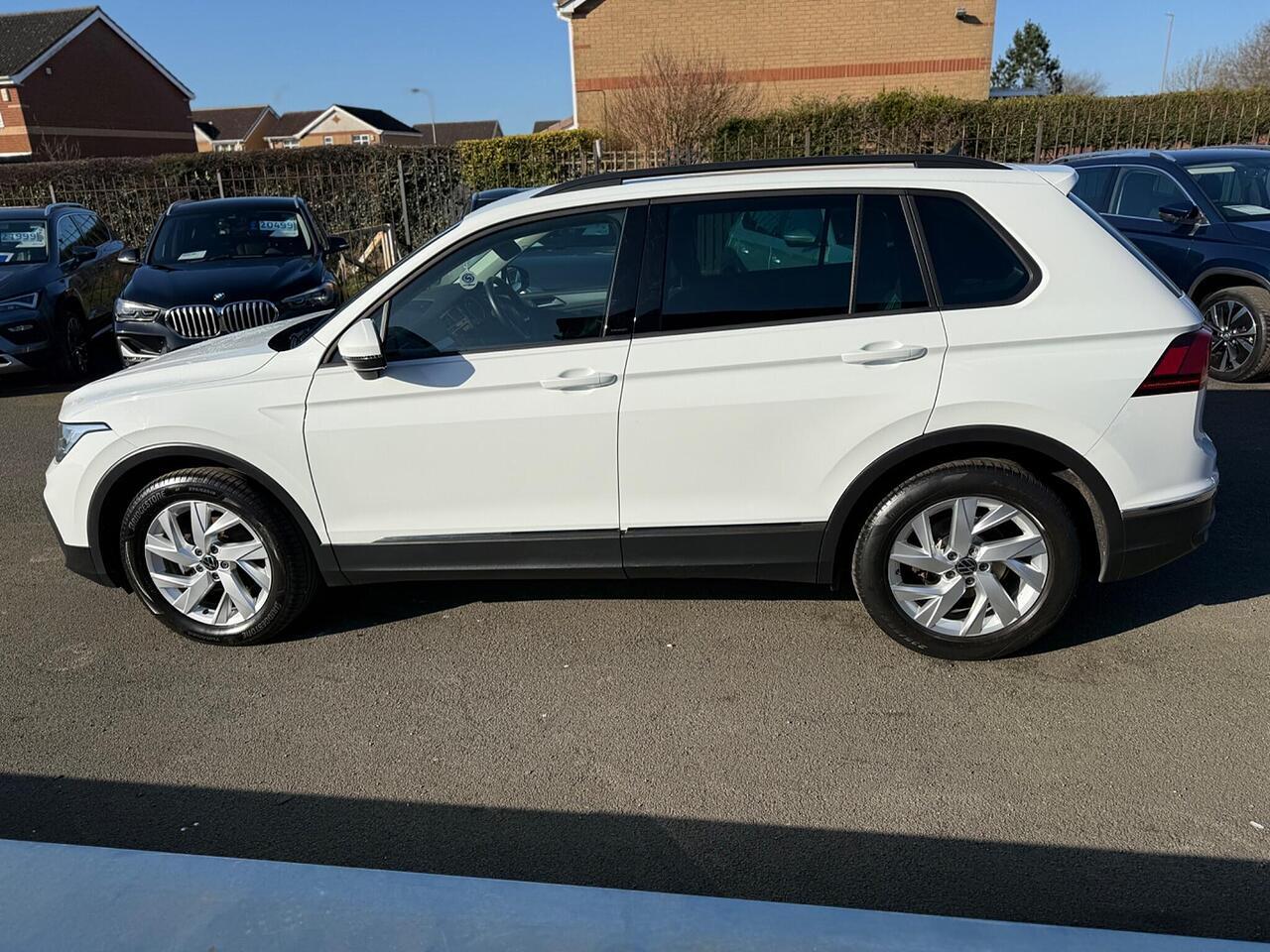 This 2022 Volkswagen Tiguan TSI Life boasts a full service history and has had only one owner from new, offering excellent provenance. Powered by a 1.5 litre Euro 6 petrol engine, this model comes with a 12 month MOT for your peace of mind. Inside, you'll find a 3 zone electronic climate control system for personalised comfort, along with adaptive cruise control to make journeys more relaxed. The Life trim also features front and rear parking sensors, and LED self levelling dipped and main beam headlights, complemented by a dusk sensor that automatically activates the driving lights.